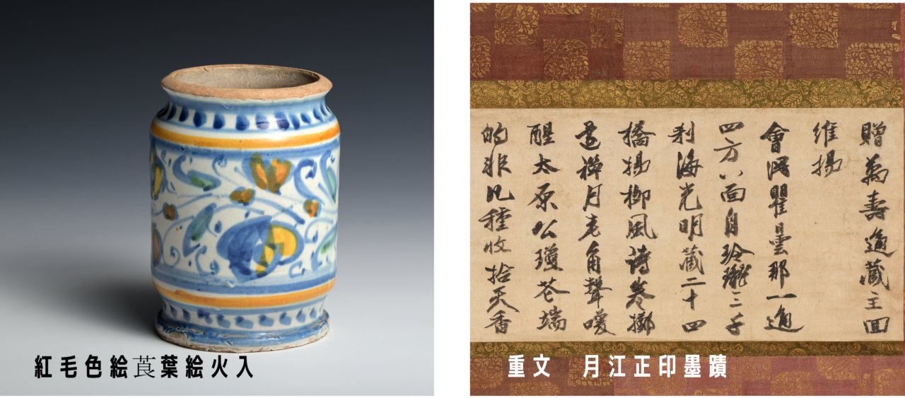古来海を渡ってきた舶来品は、その貴重さや珍しさゆえに権力や教養の象徴として受容され、強い憧れの対象となりました。権力者の威信財となったり、あるいは茶道具として愛好されたり、大切に受け継がれてきました。