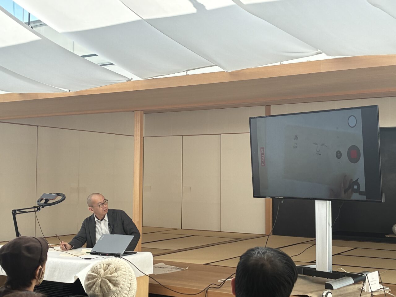 日中の大学で教鞭をとる水墨画家の丸川直人氏に、仏画と世俗画について、その線描にあらわれる“聖”と“俗”の違いを中心に、実演をまじえながら教えていただきました。東洋絵画に受け継がれた伝統技法の奥深い世界観を覗き、展示室での鑑賞がいっそう楽しくなりました。