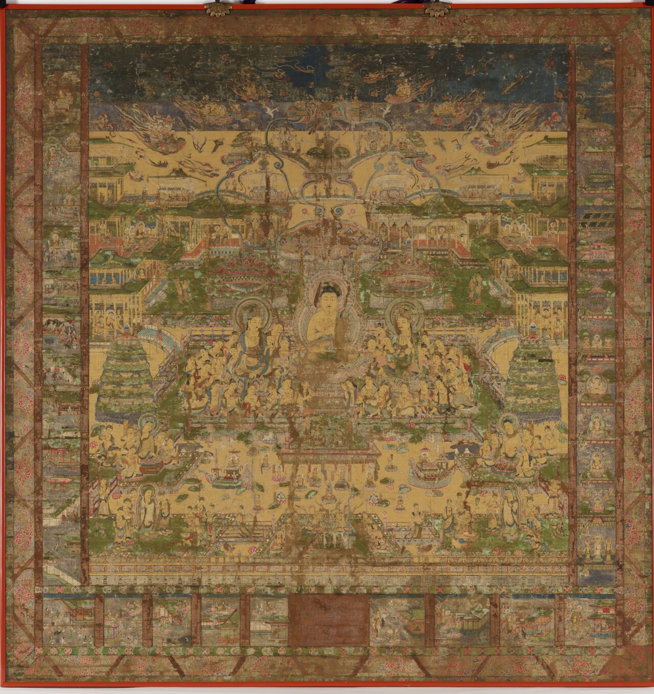 【内容】阿弥陀仏がいる西方極楽浄土は、昔の日本人がもっとも憧れたあの世です。浄土に生まれ変わりたいと切に祈る人々は、展示中の「当麻曼荼羅」のような“浄土案内図”を見て、その絵解きを聞き、イメージトレーニングに励みました。何が描かれているのか、初心者向けに解説します。