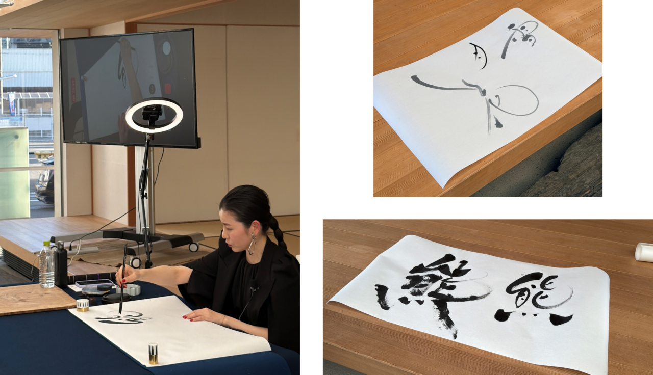 概要】特別テーマ展示『遊~アソビゴコロ~』(展示期間:10/1~12/28)にてコラボしている書家・中塚翠涛さんと、藤田清館長による対談イベント。第1回目は翠涛さんの文字の表現について、第2回は文字の先に広がる色や形の表現についてお聞きしました。手元をモニターに映す実演の時間も交えながら、作家自身の言葉を聞くことのできる貴重な機会となりました。