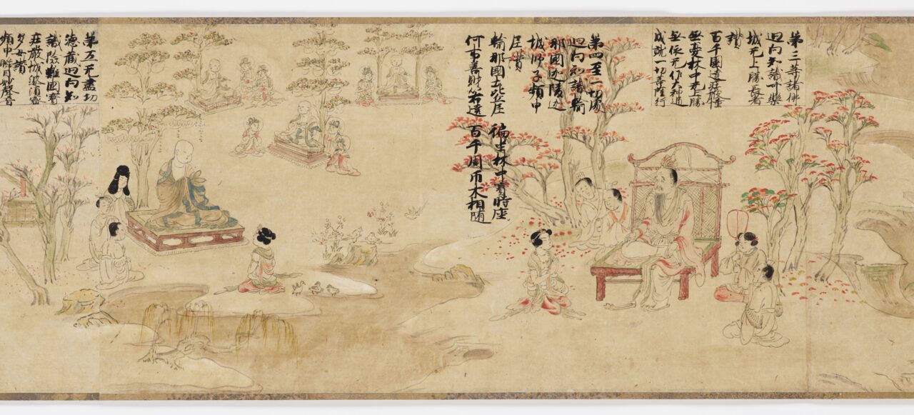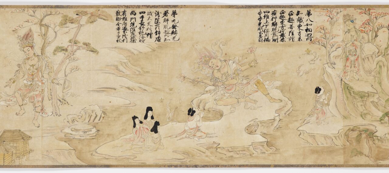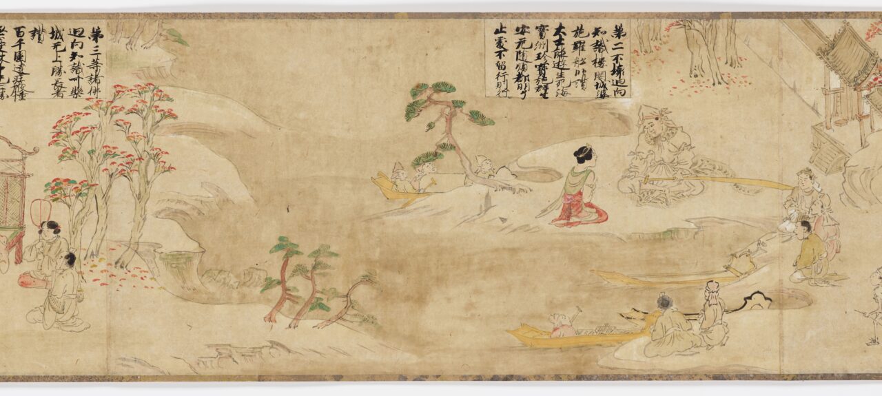 「華厳経」に説かれる善財童子の求法の旅を描いた絵巻が切断されたもの。