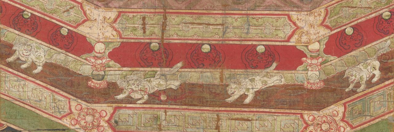 天衣を身にまとって、それぞれ楽器を持って演奏しています。教祖マニを讃える表現のひとつでは?と考えられています。ちなみに私は、更に下のほうにいる獅子が可愛くて気に入っています。