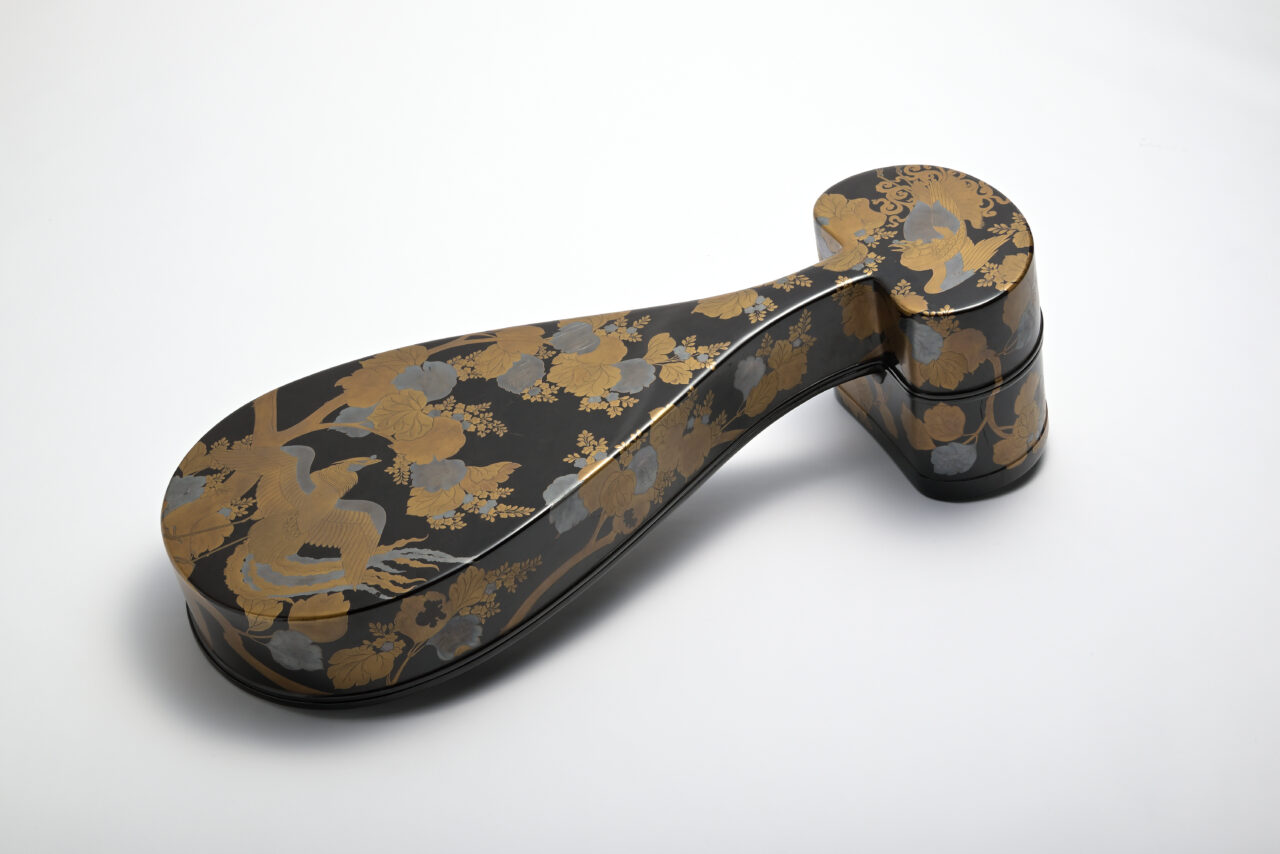 こんな箱に入れています。ただ、本体と同時に作られたかは分かりません。鳳凰と桐がデザインされています。
